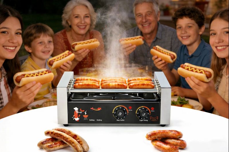 Grătar cu role pentru hotdog-uri – soluție rapidă, uniformă și atractivă
