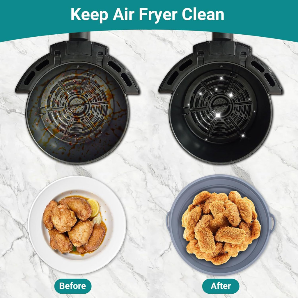 Coș din silicon pentru Airfryer, set 2 bucăți – pliabil, rezistent la căldură, gri
