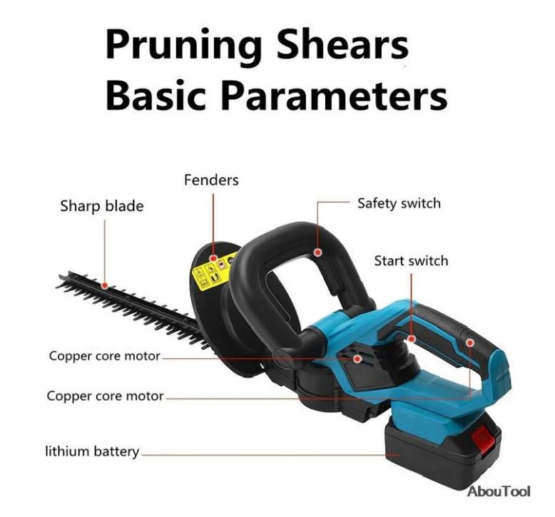 Foarfecă pentru gard viu fără fir 21V cu acumulator litiu – cu lamă din oțel SK5 și design ergonomic