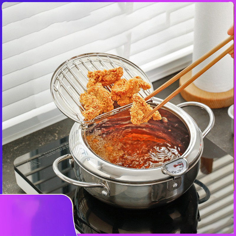 Friteuză cu ulei Tempura din oțel inoxidabil în stil japonez cu termometru