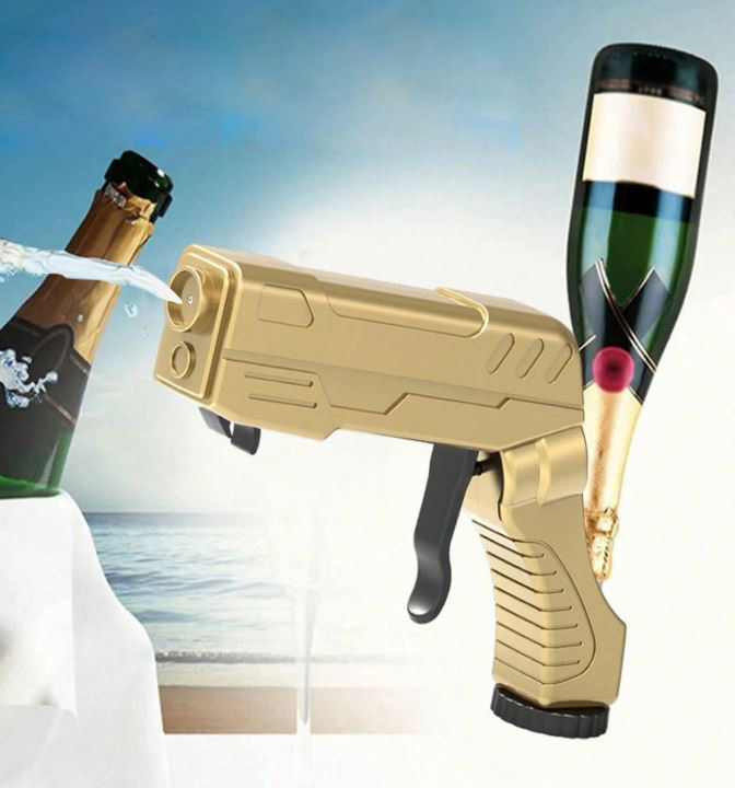 Este suficient să-l atașați pe gâtul sticlei de șampanie sau bere și instantaneu transformă băutura preferată într-un pulverizator spectaculos. Utilizează puterea carbonatării, astfel că fără a agita sticla veți obține un jet puternic – trebuie doar să apăsați pe trăgaci și distracția poate începe!