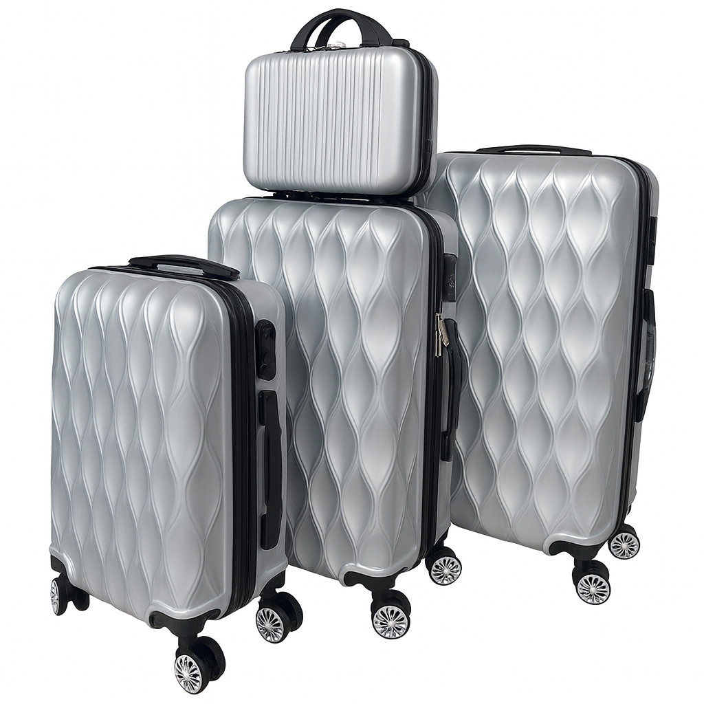 Set premium de 4 trollere, culoare argintie – ușor, durabil și stilat pentru călătorii