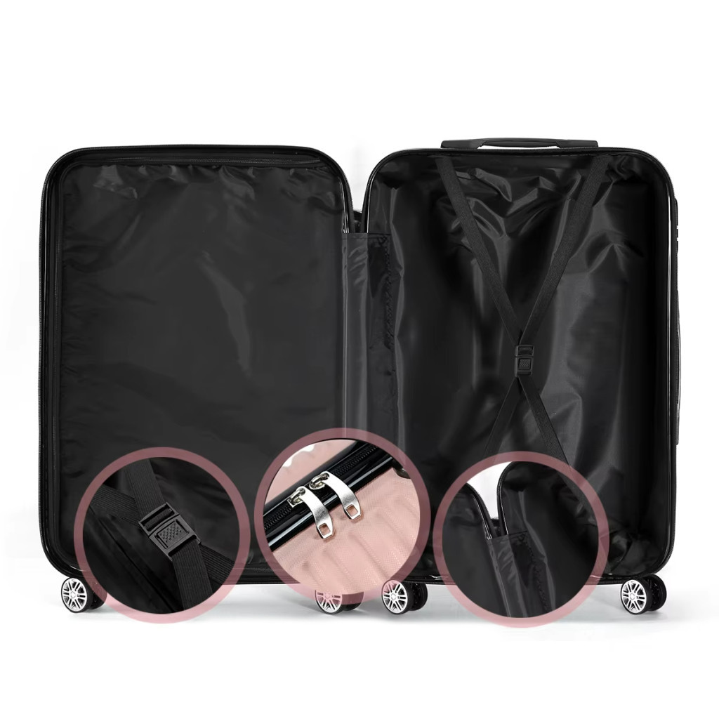 Trollerele sunt echipate cu roți duble tip spinner, care se rotesc 360°, oferind o mișcare lină și ușor controlabilă chiar și în locurile aglomerate. Funcționarea silențioasă, capacitatea de rulare multidirecțională, rezistența la uzură și durabilitatea testată garantează că trollerul va fi un companion de încredere pe termen lung.