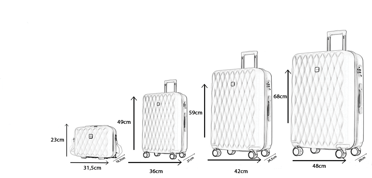 Descoperă acest set modern și rezistent de trollere, creat pentru ca fiecare călătorie să fie confortabilă, sigură și elegantă. Cele 4 trollere de dimensiuni diferite sunt alegerea perfectă pentru orice ocazie – fie că este vorba despre o escapadă de weekend sau o călătorie lungă peste hotare.