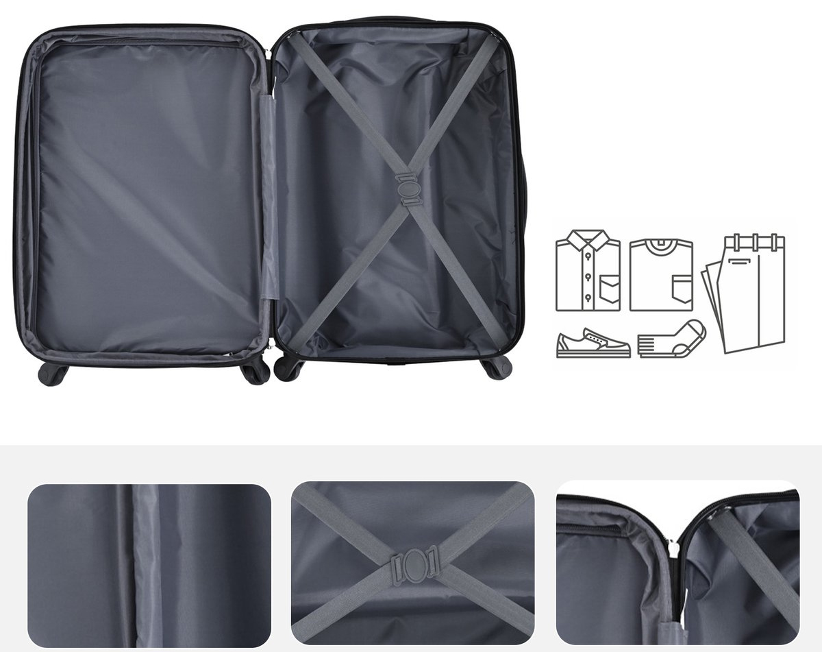 Set premium de 4 trollere, culoare neagră – ușor, durabil și stilat pentru călătorii