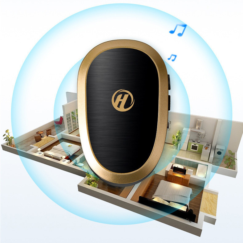 Acest sonerie elegantă fără fir în design negru-auriu nu este doar estetică, ci și practică. Se instalează ușor și, datorită razei mari de acțiune, este soluția ideală pentru apartamente, case, birouri sau magazine.